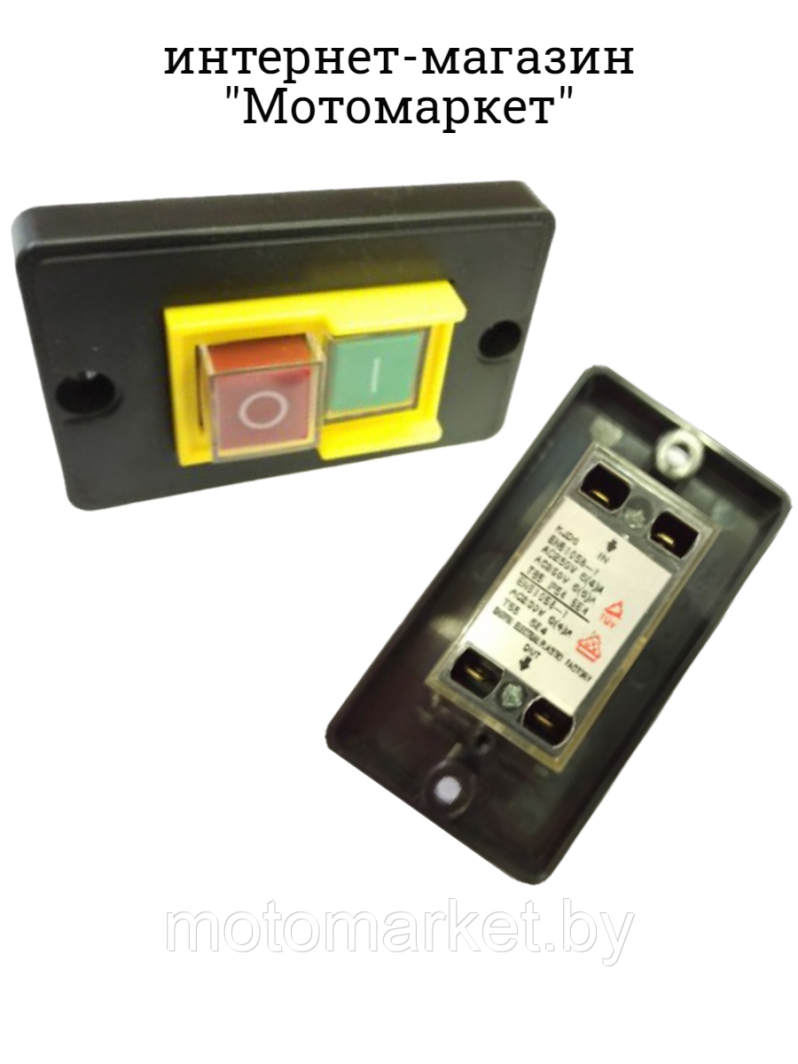 Кнопка выключения KJD 6 в корпусе. Обращаем Ваше внимание: выключатель бетономешалки может не срабатывать не в следствии его выхода из строя, а из-за плохой сети - низкого напряжения. В связи с этим, перед покупкой, убедитесь, что Ваша сеть исправна.